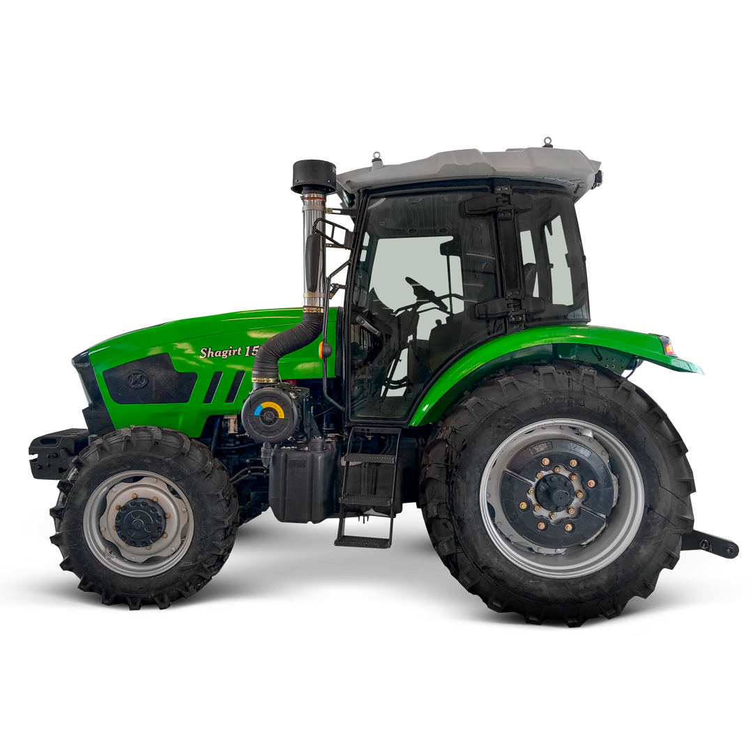 Технические характеристики трактора SHAGIRT(HAUBO) TD1504: Общие характеристики ✅Конструкционный вес, без навесного оборудования: 4262 кг ✅Габариты: Длина 4530 мм | Ширина 2050 мм | Высота 2930 мм ✅Груза передние/задние: 220/180 кг Дизельный Двигатель YTO LR6M3Z-T146X3-U2 ✅Тип двигателя: Дизельный 6-ти цилиндровый с турбонаддувом ✅Номинальная мощность: 150 л.с/110,3 кВт ✅Максимальный крутящий момент ДВС: 616 Нм при 1500-1700 об/мин. ✅Количество цилиндров: 6 ✅Объем топливного бака: 230 л Ходовая часть ✅Колесная база: 2500 мм ✅Дорожный просвет: 420 мм ✅Размер шины (передняя/задняя): 12,4 - 24/16,9 – 34 ✅Колесная формула: 4WD полный привод Трансмиссия ✅КПП: Механическая реверсивная ✅Количество передач: 16F+8R ✅Тип сцепления: Двухдисковое, сцепление 14 дюймовое ✅Блокировка дифференциала: Блокировка дифференциала заднего моста Система управления навесным оборудованием ✅Гидроусилитель руля (ГУР): Полностью гидравлическая рулевая передача с отдельным гидравлическим контуром ✅Гидравлический распределитель: Полностью независимая гидросистема, раздельного типа ✅Количество гидровыходов: 2 пара гидровыходов с быстросъемным соединением ✅Гидропоток: 82,8 л/мин ✅Тип и скорость ВОМ: 6-ти пазовый Ø38, независимый синхронный, 540/1000 об/мин ✅Механизм навески: Трёхточечная задняя грузоподъемностью3600 кг Тормозная система ✅Тип тормозной системы: Дисковые, в масляной ванне, с гидроприводом Опции ✅Компрессор, пневмоусилитель тормозной системы, ресивер, пневмовыход ✅Кондиционер, отопитель, вентилятор, люк, солнцезащитная шторка ✅Мультимедийная система, камера заднего вида, проблесковый маячок ✅Подрулевые переключатели, регулируемая рулевая колонка, премиум сиденье с подлокотниками и регулировка по весу