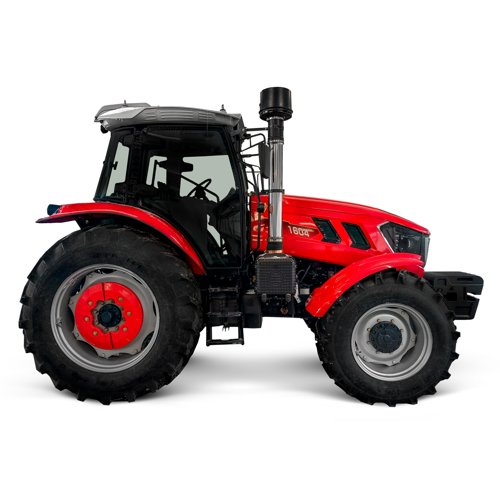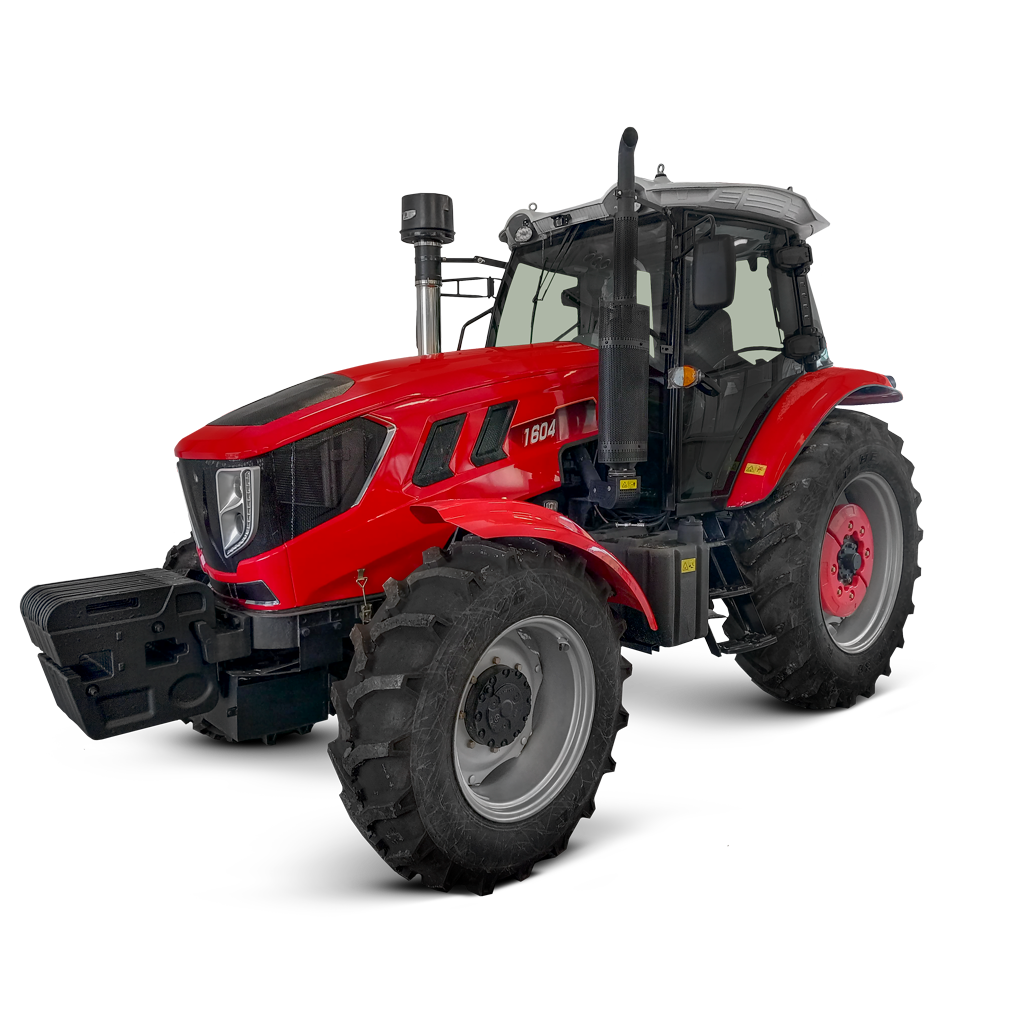 Технические характеристики трактора WEITUO 1604: Общие характеристики ✅Конструкционный вес, без навесного оборудования: 6114 кг ✅Габариты: Длина 5140 мм | Ширина 2220 мм | Высота 3000 мм ✅Груза передние/задние: 720/340 кг Дизельный Двигатель Weichai-Deutz ✅Тип двигателя: Дизельный 6-ти цилиндровый с турбонаддувом ✅Номинальная мощность: 160 л.с/118 кВт ✅Максимальный крутящий момент ДВС: 663 Нм при 1500-1700 об/мин. ✅Количество цилиндров: 6 ✅Объем топливного бака: 260 л Ходовая часть ✅Колесная база: 2928 мм ✅Дорожный просвет: 460 мм ✅Размер шины (передняя/задняя): 14,9 - 26/18,4 – 38 ✅Колесная формула: 4WD полный привод Трансмиссия ✅КПП: Механическая реверсивная ✅Количество передач: 16F+8R ✅Тип сцепления: Двухдисковое «LUK», сцепление 14 дюймовое ✅Блокировка дифференциала: Блокировка дифференциала заднего моста Система управления навесным оборудованием ✅Гидроусилитель руля (ГУР): Полностью гидравлическая рулевая передача с отдельным гидравлическим контуром ✅Гидравлический распределитель: Полностью независимая гидросистема, раздельного типа ✅Количество гидровыходов: 3 пара гидровыходов с быстросъемным соединением ✅Гидропоток: 86,4 л/мин ✅Тип и скорость ВОМ: 8-ти пазовый Ø38, независимый синхронный, 760/850 об/мин ✅Механизм навески: Трёхточечная задняя грузоподъемностью3700 кг Тормозная система ✅Тип тормозной системы: Дисковые, в масляной ванне, с гидроприводом Опции ✅Компрессор, пневмоусилитель тормозной системы, ресивер, пневмовыход ✅Кондиционер, отопитель, вентилятор, люк, солнцезащитная шторка ✅Мультимедийная система, камера заднего вида, проблесковый маячок ✅Подрулевые переключатели, регулируемая рулевая колонка, премиум сиденье с подлокотниками и регулировка по весу